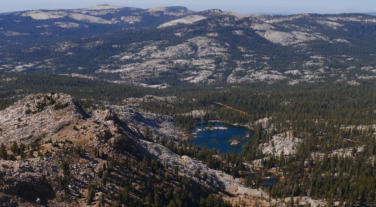 The trail was well defined and easy to follow. We took it for 2.5 miles, passing by Norris Lake along the way, to a spot just before the first of the Jackass Lakes (Lake 8808 on topo map). From there, we left the trail and headed in a general western direction up a short section of slabs and then gentle forested slopes towards Lake 9150.